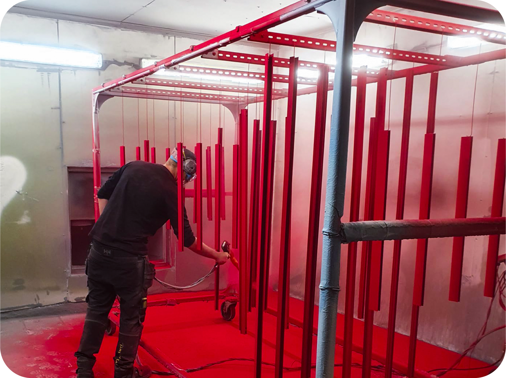 Pulverlackat i RAL1018, 10mm S355MC.